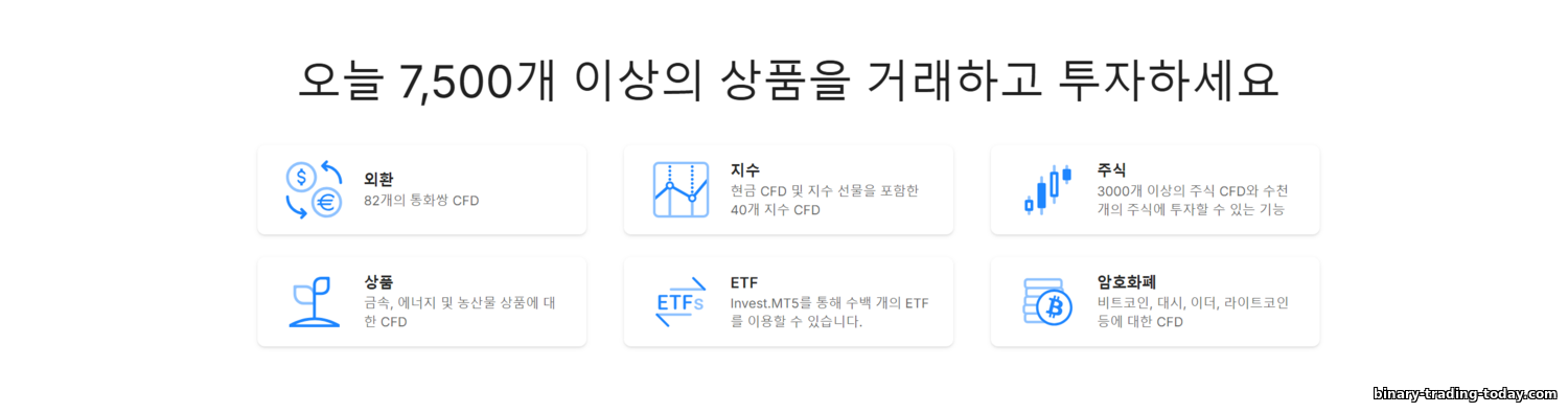 - 거래 상품: 8,000개+ — FX 페어, 주식·지수·원자재·채권·암호화폐·ETF CFD 등