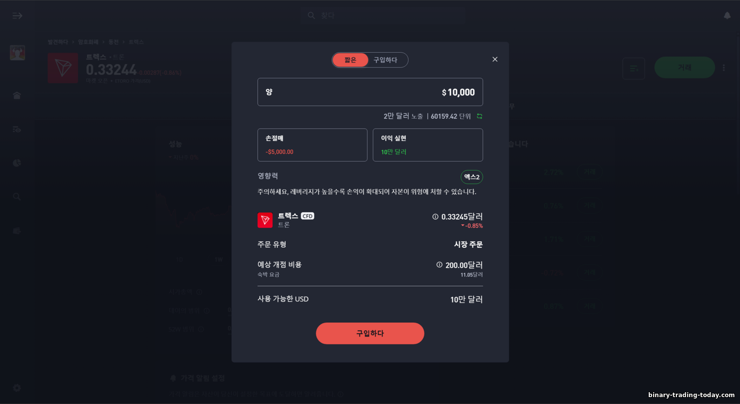 - 주문 유형: 시장가와 지정가(리밋/스톱) 주문 지원. 손절(Stop Loss)과 익절(Take Profit) 설정 가능. 트레일링 스톱, OCO 등 고급 유형은 미지원.