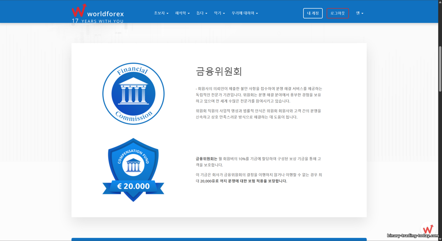 신뢰 강화를 위해 World Forex는 The Financial Commission(외부 분쟁조정기구)의 회원사입니다. 회원사는 자발적으로 참여하며, World Forex는 수년째 A 카테고리로 활동 중입니다. 실무적으로 분쟁(예: 의심스러운 체결, 출금 지연 등)이 발생하면 위원회로 상향 처리할 수 있습니다. 위원회의 결정은 회원사에 구속력이 있으며, 회원사가 잘못한 것으로 판정되면 전용 보상기금에서 고객당 최대 €20,000까지 배상될 수 있습니다. 오프쇼어 상태라 해도 투자자 보호의 실질적 장치가 존재하는 셈입니다.